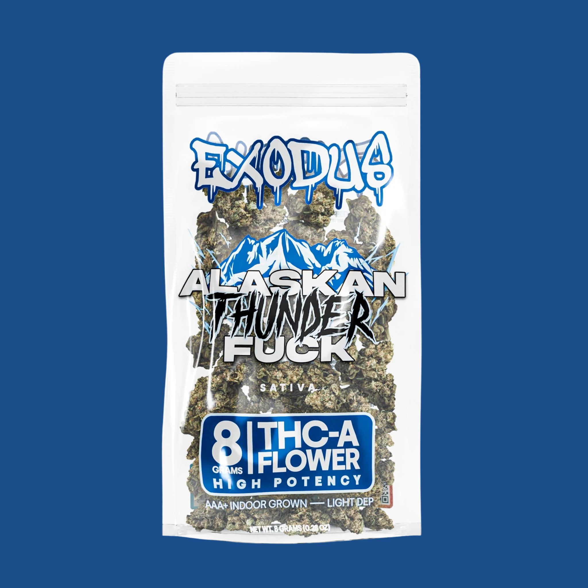 Exodus THCA Flower is a premium hemp product comprised of indoor‑grown THCA flower buds. It’s crafted to provide a potent cannabinoid experience with strong terpene profiles, sold in 8 g resealable pouches.