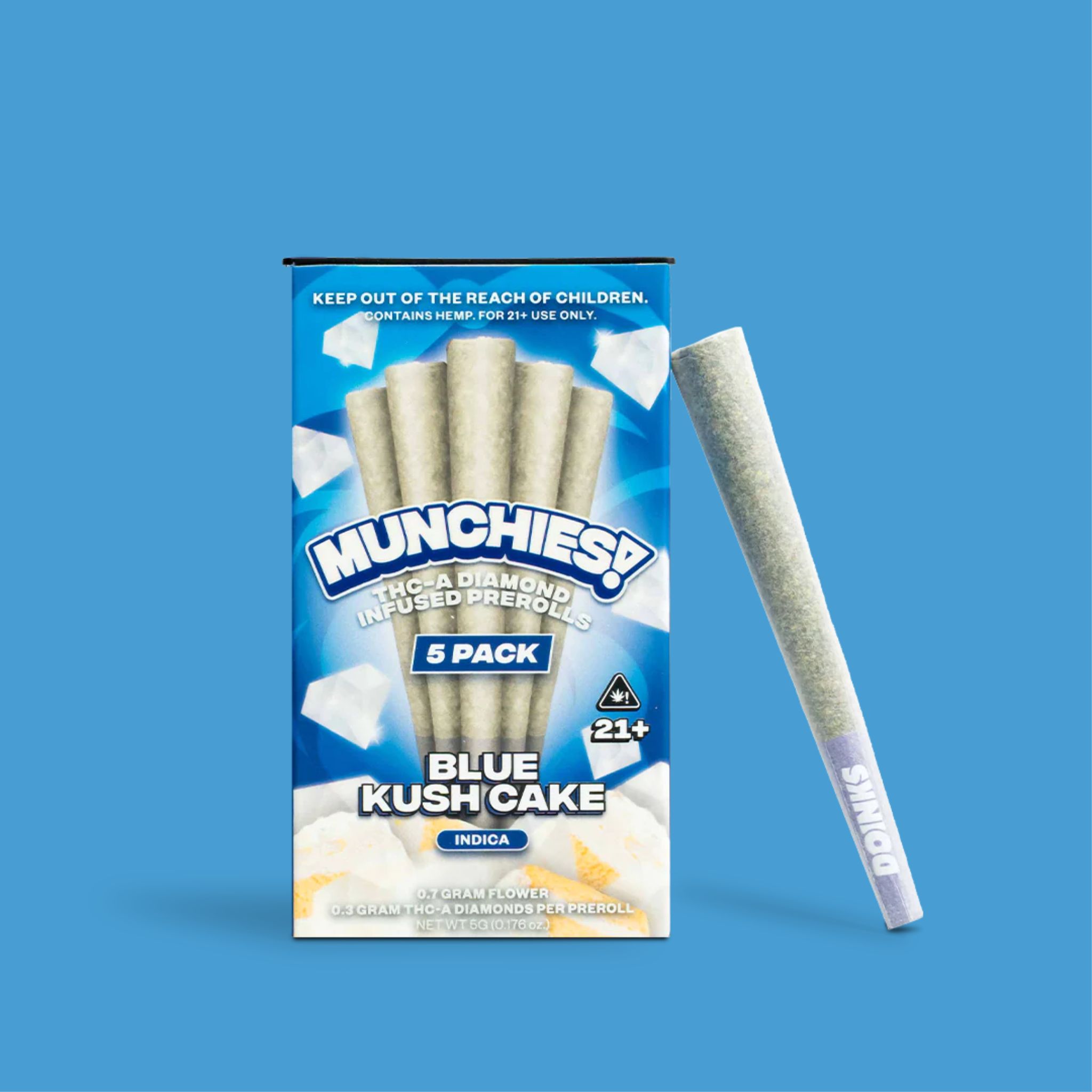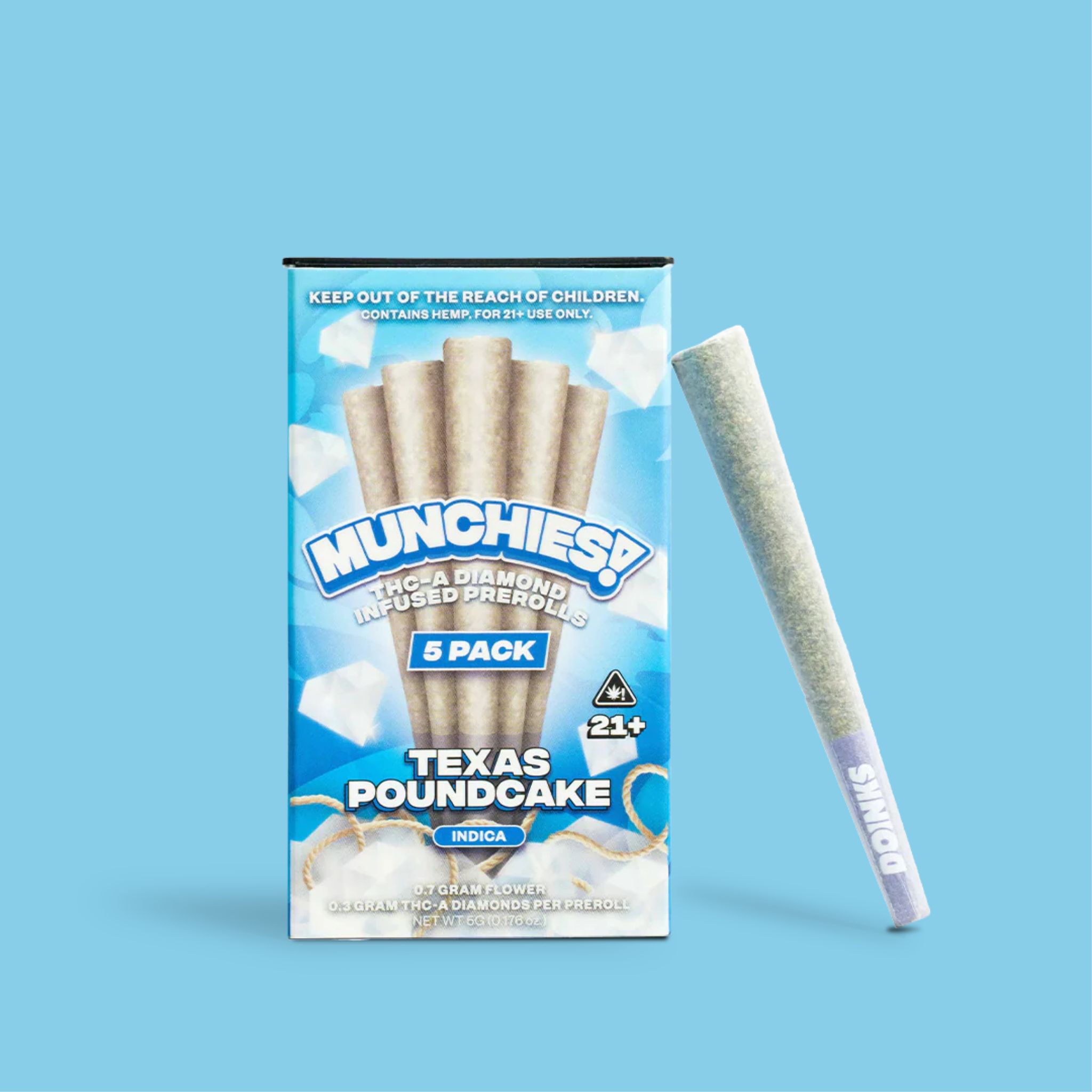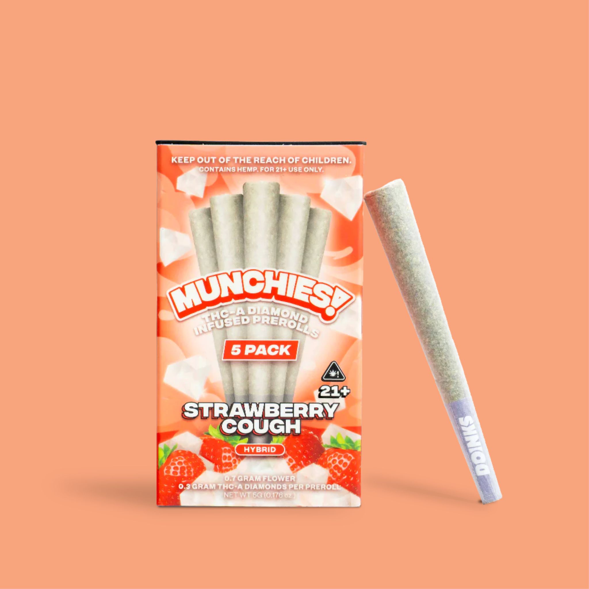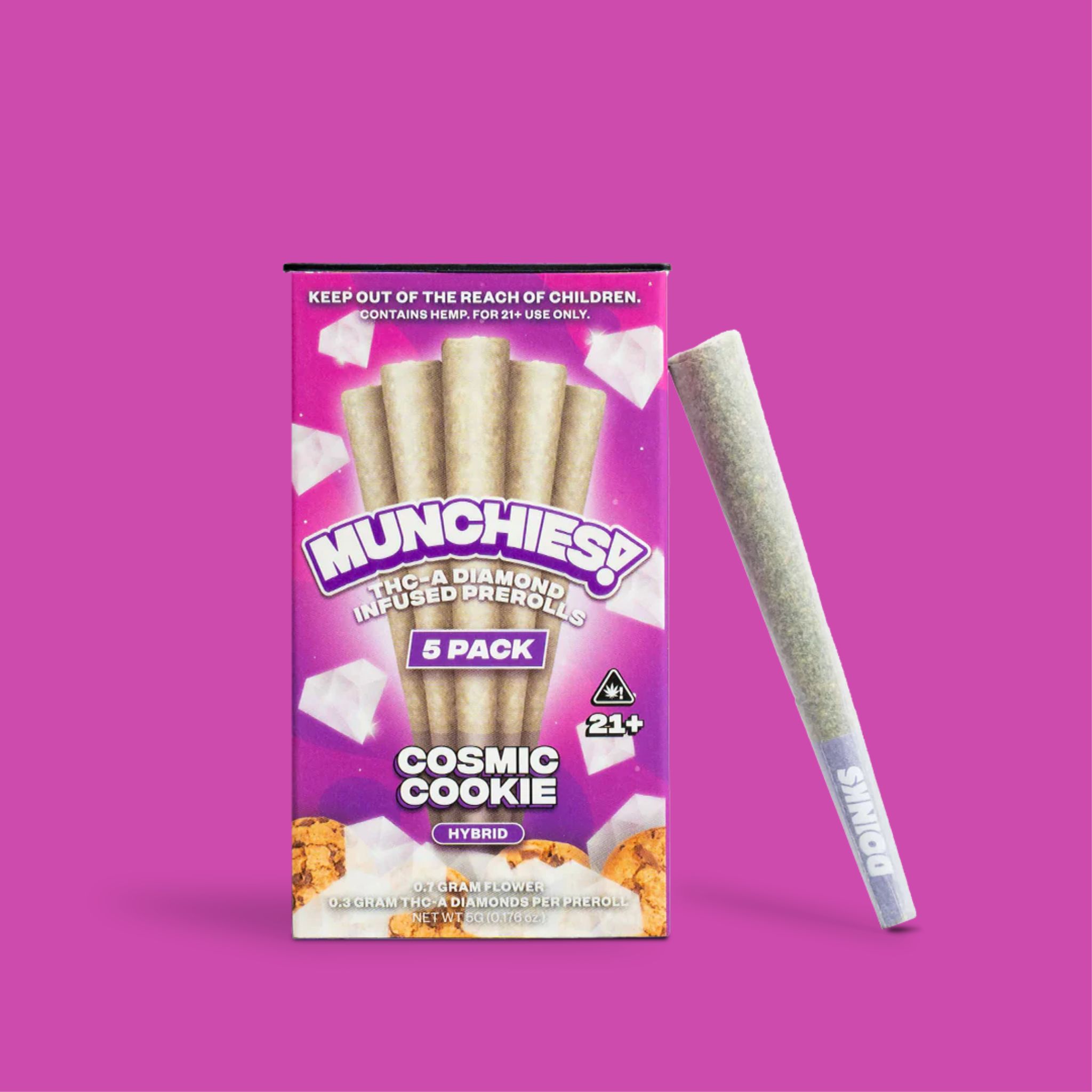 Munchies Pre Rolls bring together the best of both worlds. Each joint in this premium 5-pack features carefully crafted THC-A diamond flower that provides an exceptional smoking experience from the first light to the last puff.