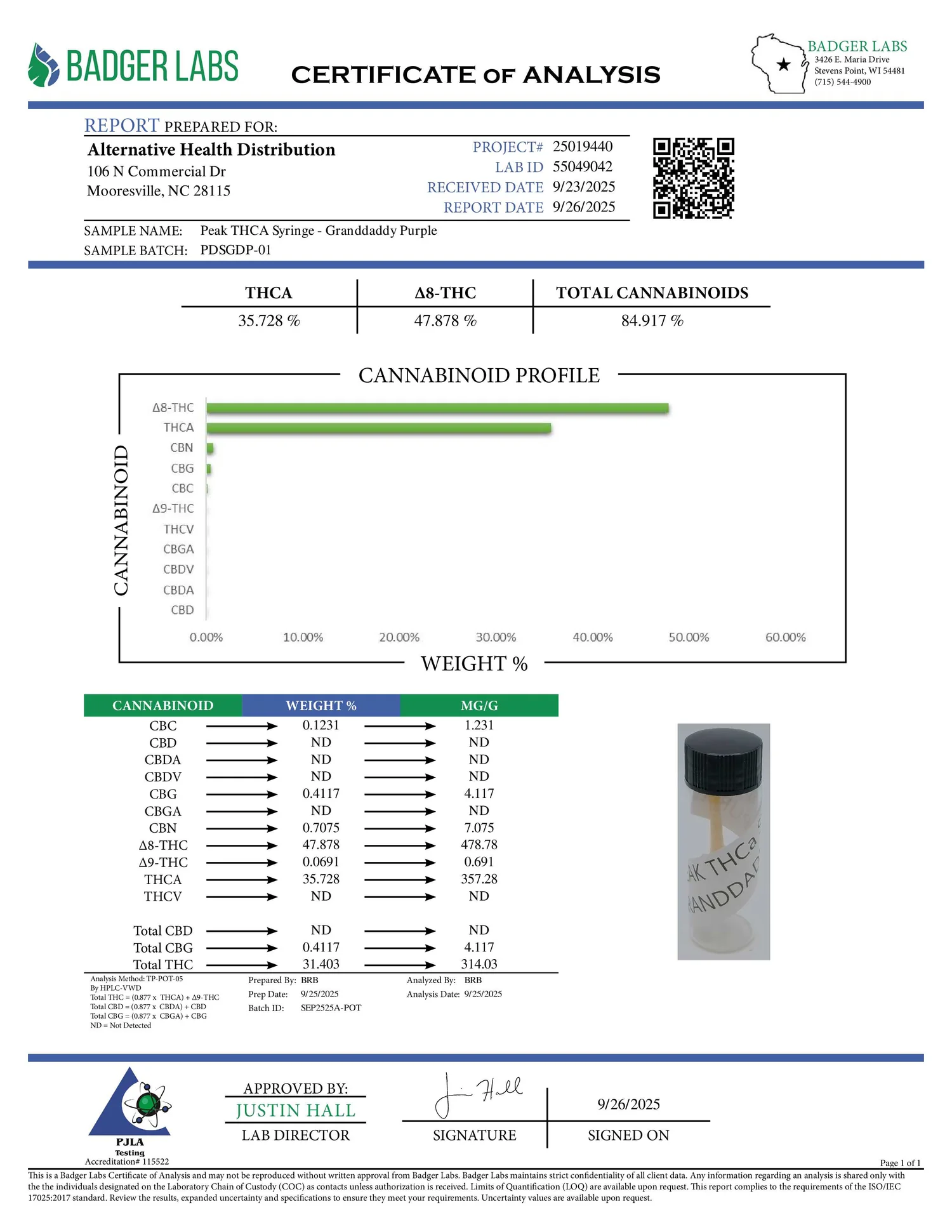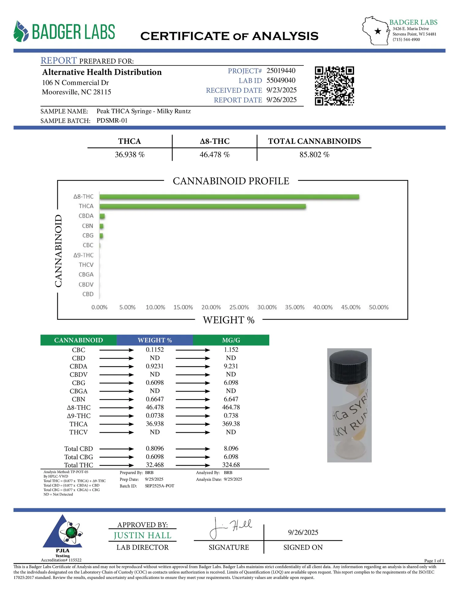 The result is an extremely pure concentrate containing primarily THCA with minimal other compounds.