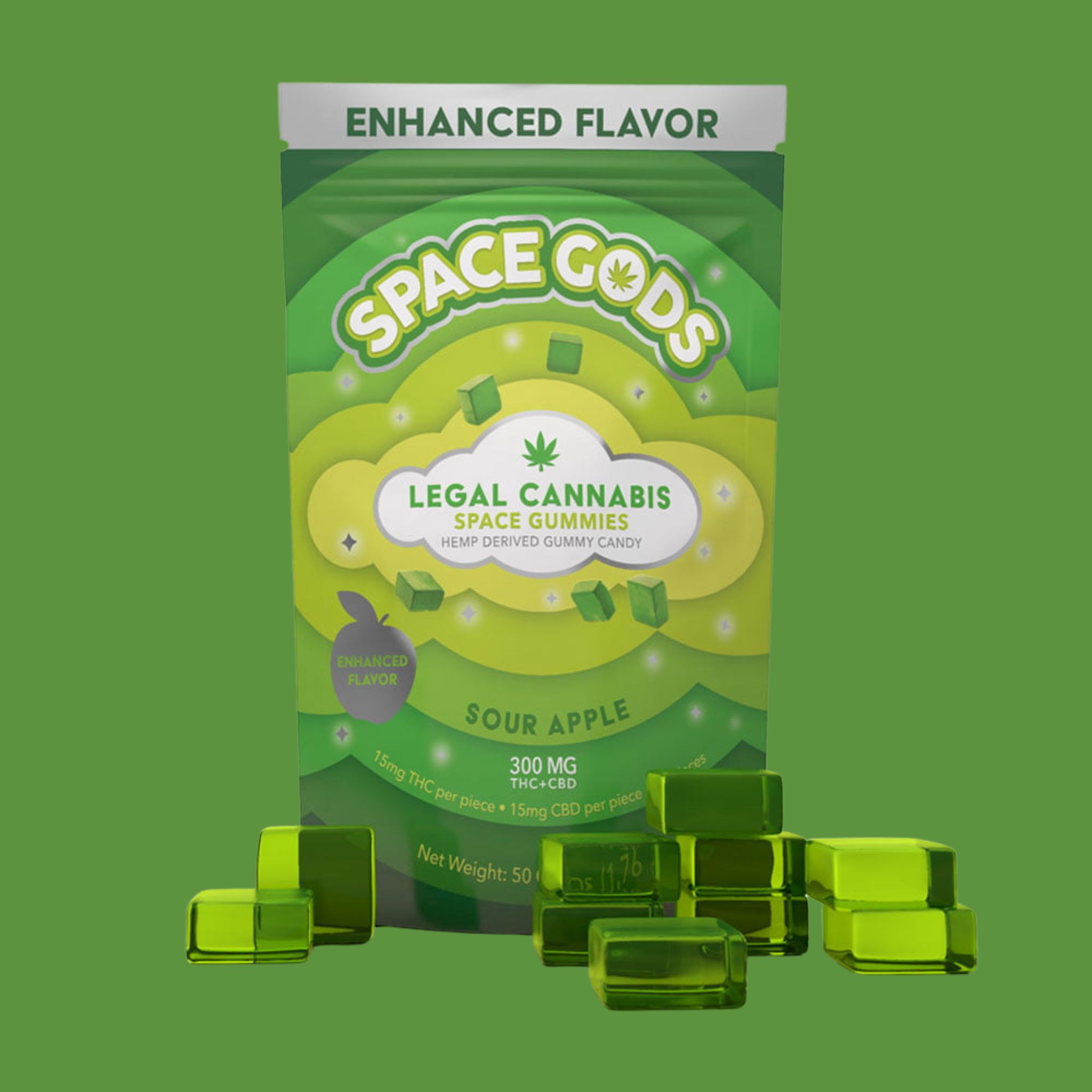 - Space Gods Gummies deliver a balanced 1:1 blend of hemp-derived THC and CBD.