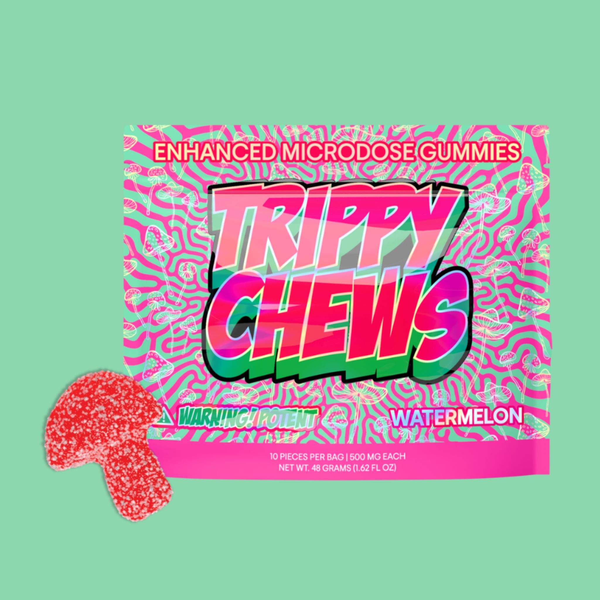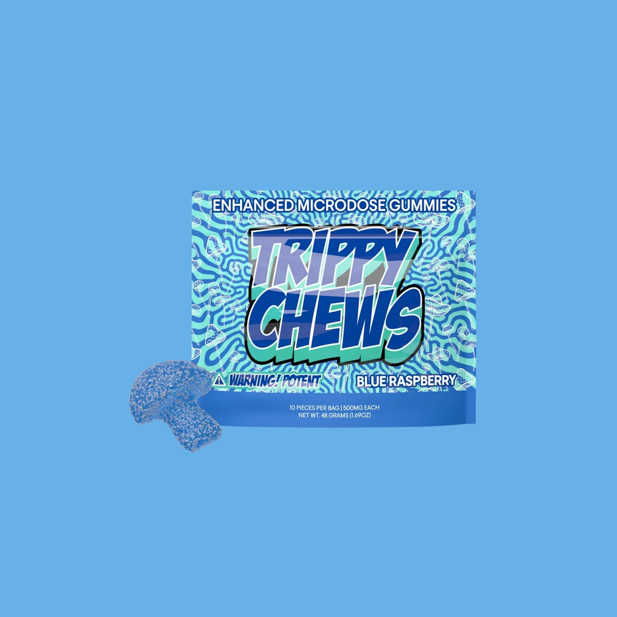 - 10 Trippy Chews gummies per bag for a total of 5000 mg.